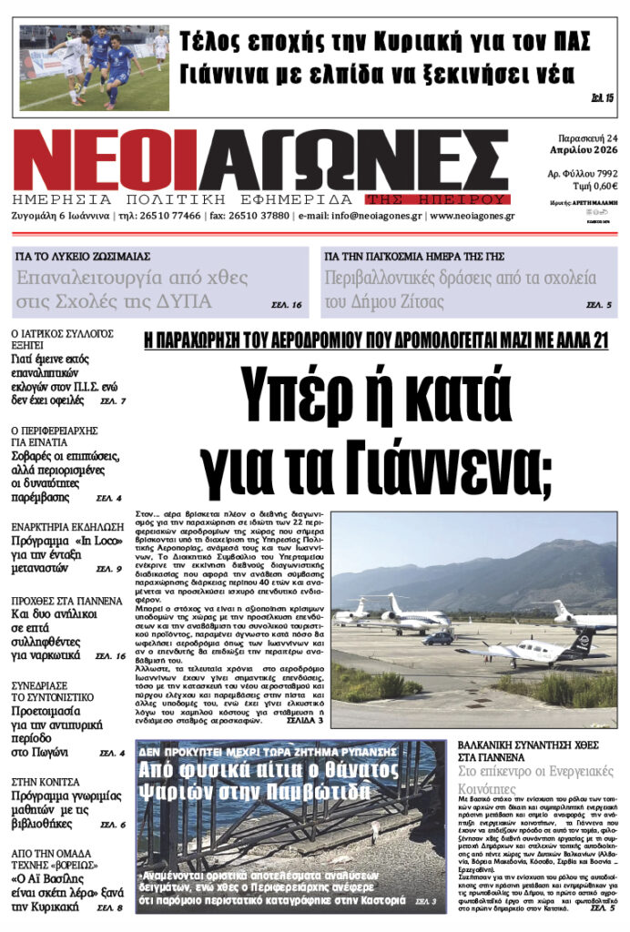 ΠερισσότεραΑπογοητεύοντας μία ακόμα φορά εκτός έδρας, ο ΠΑΣ Γιάννινα ηττήθηκε με 1-0 από τον Νέστο Χρυσούπολης και τερματίζει οριστικά στην...