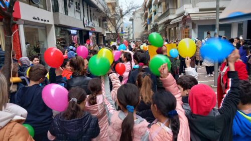 Χθες, οι μαθητές βρέθηκαν πίσω από την Περιφέρεια φορώντας  μάσκες που απεικονίζουν συναισθήματα της βίας και του εκφοβισμού και αναπαρέστησαν μορφές βίας με κινήσεις. Στις 11.00, οι μαθητές/τριες έσπασαν ταυτόχρονα ένα μπαλόνι, συμβολίζοντας το σπάσιμο της σιωπής.