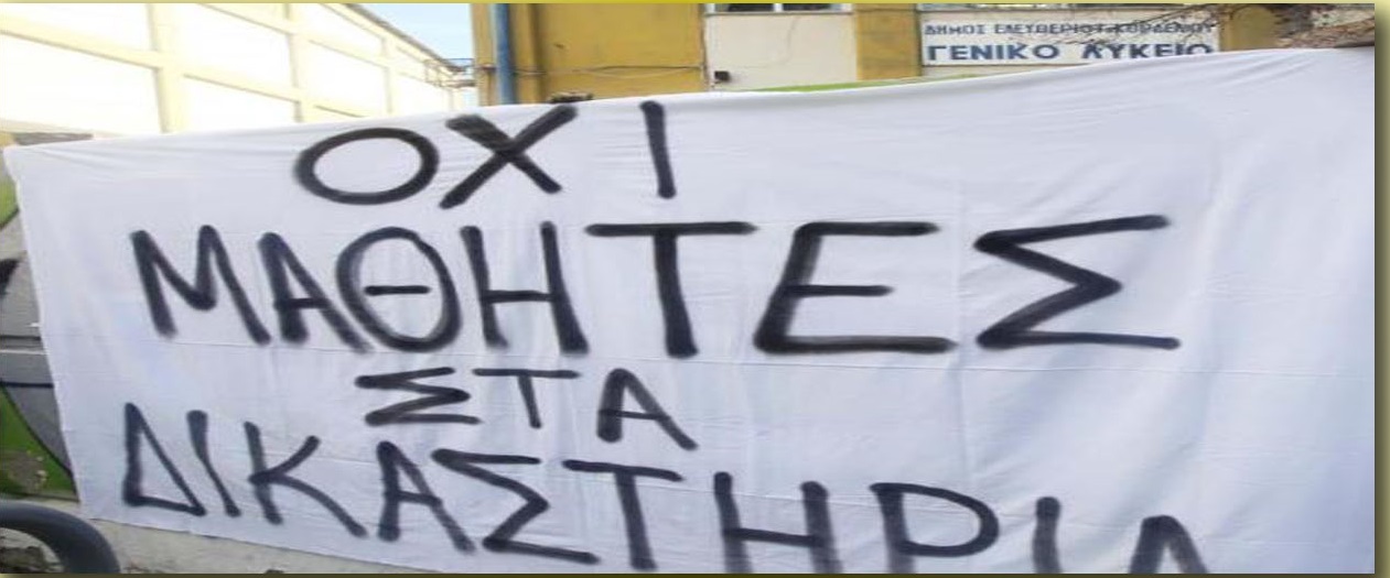 Με την παρουσία μας έξω από το Δικαστικό Μέγαρο την Παρασκευή 25/2 θέλουμε να εκφράσουμε την καταδίκη των αυταρχικών συμπεριφορών και των αντιπαιδαγωγικών μεθοδεύσεων ενάντια στους μαθητές. Να απαιτήσουμε τον τερματισμό κάθε δίωξης. Ακόμα και όταν δεν συμφωνούμε με τις μορφές που επιλέγουν οι μαθητές, οι μηνύσεις εναντίον τους δεν αποτελούν λύση, αλλά ομολογία αποτυχίας, είναι αντιπαιδαγωγική και έξω από το πνεύμα της εκπαίδευσης. Στεκόμαστε δίπλα στα παιδιά μας και στις συλλογικές αποφάσεις που λαμβάνουν. Αγωνιζόμαστε μαζί με τους μαθητές που αντιστέκονται και διεκδικούν ένα καλύτερο σχολείο.”