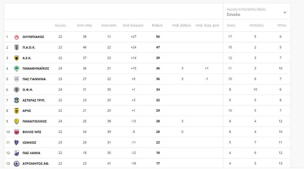 Έτσι ο ΠΑΣ, με βαθμό στο ΟΑΚΑ περνά και πάλι στην τέταρτη θέση του πρωταθλήματος ενώ αν πάρει το τρίποντο θα φτάσει την ΑΕΚ στην 3η θέση!