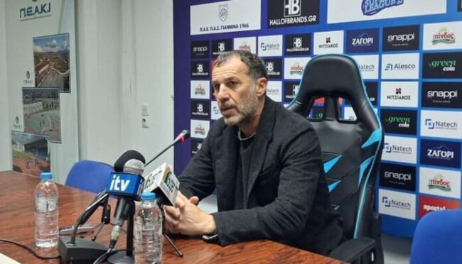 «Είμαστε πολύ στεναχωρημένοι, γιατί κάναμε μία τιτάνια προσπάθεια. Οι ποδοσφαιριστές μου  αξίζουν συγχαρητήρια, πάλεψαν σαν λιοντάρια, αλλά κάποιοι δεν θέλανε να πάρουμε πόντους σήμερα. Δεν θέλω να πω σκληράδες γιατί μπορεί να τιμωρηθώ, αλλά όσοι ήταν γήπεδο είδαν ότι ό,τι προσπαθούσαμε να ‘χτίσουμε’ κάποιοι το γκρέμιζαν.Είναι ιεροσυλία απέναντι στα Γιάννενα, που είναι μία ιστορική ομάδα, είναι τόσα χρόνια στην Α’ Εθνική, να αντιμετωπίζεται έτσι. Είμαι πολύ στεναχωρημένος γιατί οι παίκτες μου παλέψανε με φαβορί ανόδου, που έχει μπάτζετ εκατομμυρίων και αν δεν ήξερες τη βαθμολογία θα νόμιζες ότι έπαιζε 1ος – 2ος . Είμαι πολύ περήφανος για τους παίκτες μου, αλλά δυστυχώς δεν πήραμε βαθμό-βαθμούς.