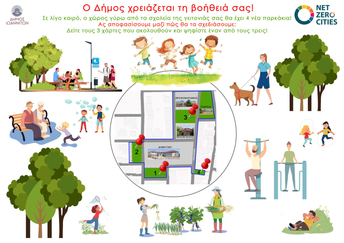 Ο Δήμος Ιωαννιτών, εναρμονισμένος με την Ευρωπαϊκή πολιτική του New European Bauhaus (beauty, sustainability, society), και εφαρμόζοντας την σταθερή δέσμευσή του για συμπερίληψη των τοπικών κοινοτήτων στη λήψη αποφάσεων που τις αφορούν, απευθύνεται στη σχολική κοινότητα του 13ου Δημοτικού Σχολείου, με μια δράση που θα φέρει τα παιδιά στον ρόλο του σχεδιαστή.