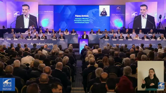 Επεισοδιακό και βαθιά διχαστικό για την ενότητα και διεκδικητικότητα της αυτοδιοίκησης ήταν το κλείσιμο του ετήσιου συνεδρίου της Κεντρικής Ένωσης Δήμων Ελλάδος το περασμένο Σάββατο στην Αλεξανδρούπολη, αφού για την κατά πλειοψηφία έγκριση του ψηφίσματος χρειάστηκε ψηφοφορία δια ανατάσεως της χειρός με ψηφοσυλλέκτες, όπως ζήτησε η παράταξη από το χώρο του ΠΑΣΟΚ “Αυτοδιοίκηση Τώρα” με επικεφαλής τον δήμαρχο Αθηναίων Χάρη Δούκα διαφωνώντας με το περιεχόμενο του, ενώ και στους κόλπους της πλειοψηφούσας παράταξης “Σύγχρονοι Ισχυροί Δήμοι” του προέδρου Λάζαρου Κυρίζογλου υπήρξαν αντιδράσεις και αμφισβητήσεις στο πρόσωπο του από “γαλάζιους” αυτοδιοικητικούς για χαλαρή διεκδίκηση όσων δικαιούται η Τ.Α. από την κυβέρνηση, με προεξάρχοντα τον α΄αντιπρόεδρο Γρηγόρη Κωνσταντέλλο, παρόλο που νωρίτερα είχε δεχθεί την πρόταση Δούκα για κλείσιμο των δημαρχείων που συμπεριλήφθηκε στο ψήφισμα.