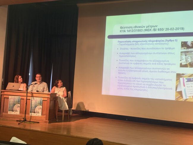 Ο Γιάννης Πέττας, χημικός και εκπρόσωπος του ΕΦΕΤ, παρουσίασε τους κανόνες επισήμανσης και τις υποχρεώσεις των επιχειρήσεων βάσει της ευρωπαϊκής και εθνικής νομοθεσίας, δίνοντας σαφείς κατευθύνσεις για την ασφάλεια των καταναλωτών με αλλεργίες.