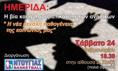 Ενημερωτική ημερίδα με θέμα την βία και την παραβατικότητα ανηλίκων διοργανώνει η NTOUGIAS BASKETBALL ACADEMY.