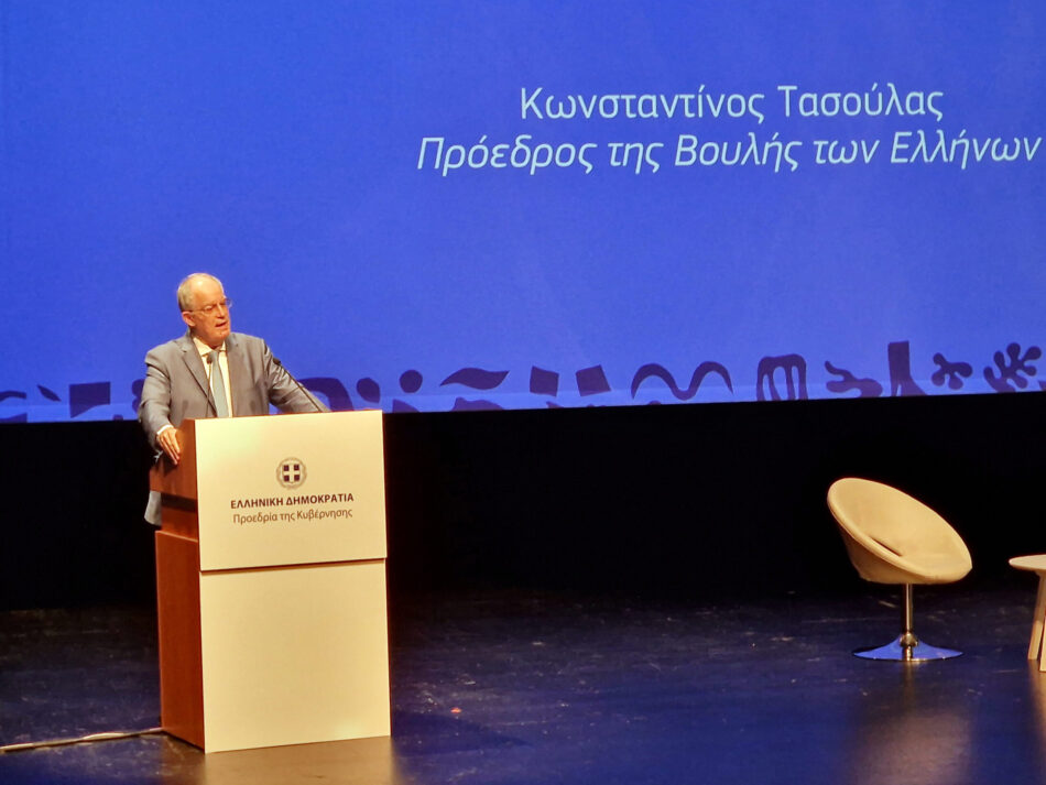 Αυτό τόνισε ο Πρόεδρος της Βουλής των Ελλήνων, κ. Κωνσταντίνος Τασούλας, κηρύσσοντας της έναρξη των εργασιών της εκδήλωσης «Η λειτουργία του επιτελικού κράτους στη νομοθέτηση: Η περίπτωση της Ελλάδας ως φιλοδοξία και έμπνευση», που διοργανώνεται σήμερα, από την Προεδρία της Κυβέρνησης, στο Μέγαρο Μουσικής Αθηνών.