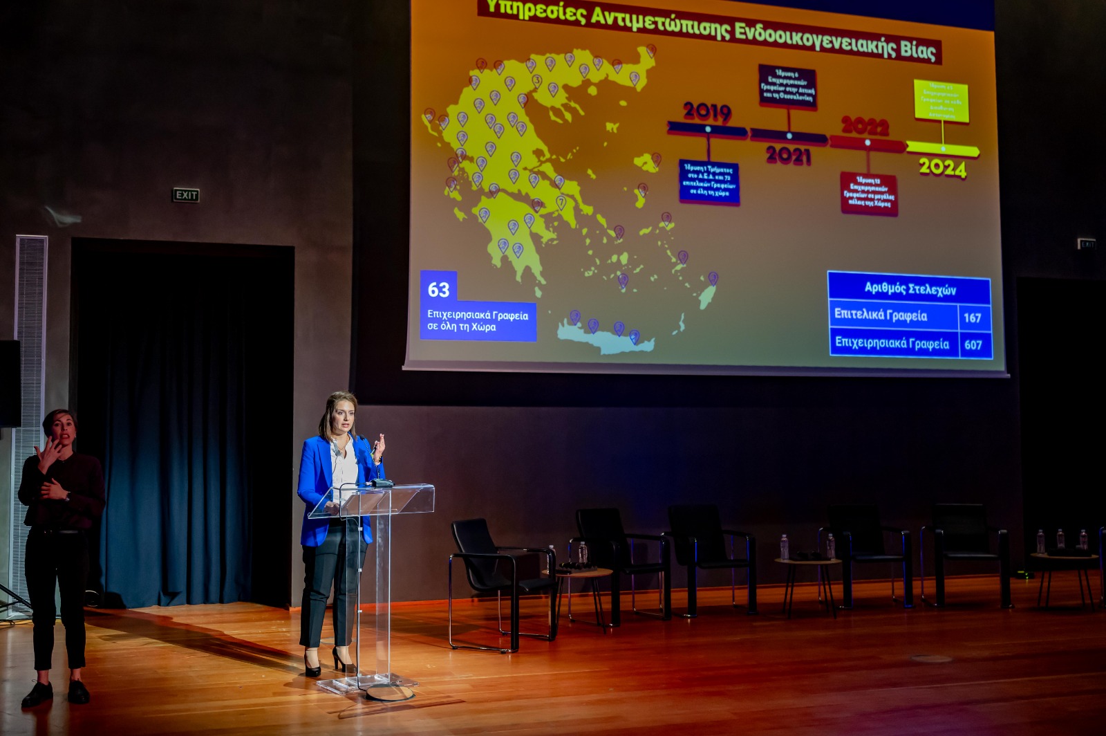 Στη συνέχεια η Προϊσταμένη της Διεύθυνσης Κοινωνικής Προστασίας και Συμβουλευτικών Υπηρεσιών της Γενικής Γραμματείας Ισότητας και Ανθρωπίνων Δικαιωμάτων, Αγγελική Παπάζογλου  και η Αστυνομική Υποδιευθύντρια, Προϊσταμένη Τμήματος Αντιμετώπισης Ενδοοικογενειακής Βίας της Διεύθυνσης Γενικής Αστυνόμευσης του Αρχηγείου της ΕΛ.ΑΣ, Δήμητρα Κατεχάκη έκαναν απολογισμό των δράσεων των υπηρεσιών τους.
