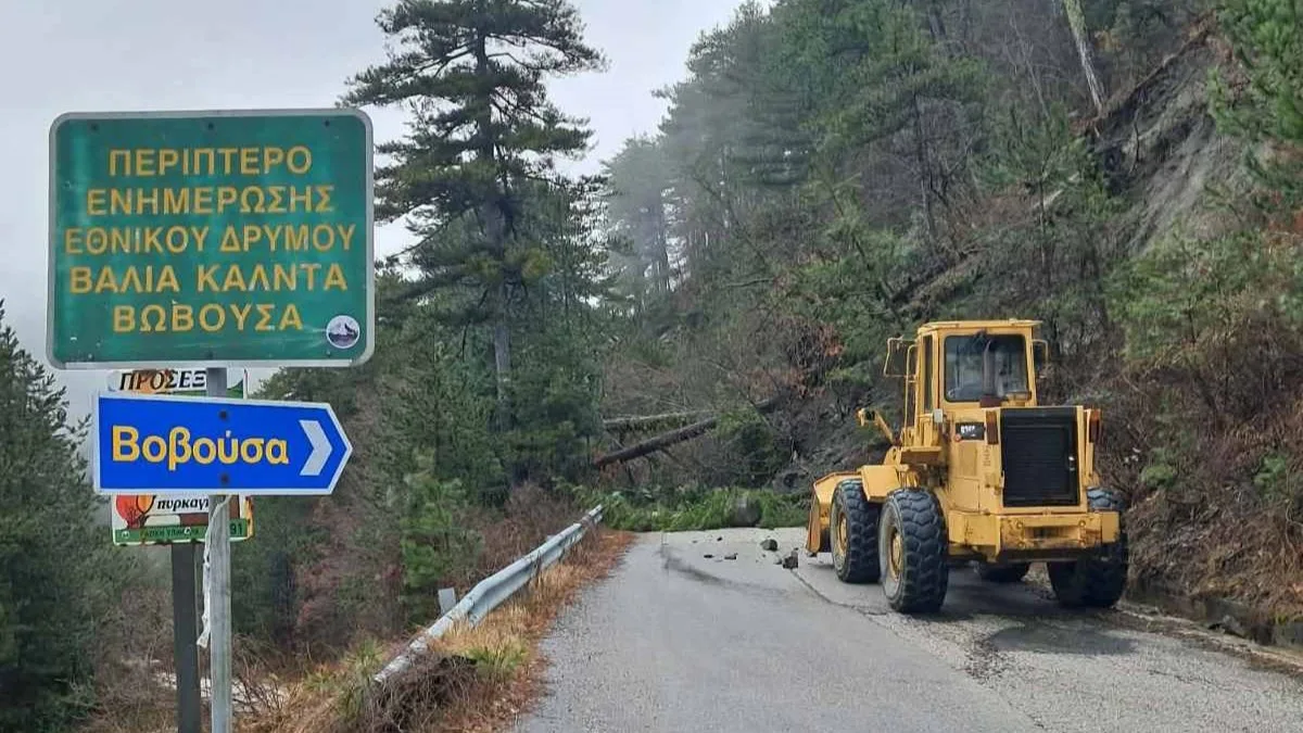 Στο δρόμο προς Βωβούσα κοντά στη διασταύρωση προς  Ελατοχώρι Ζαγορίου, η κατάσταση χαρακτηρίζεται ακόμη πιο σοβαρή, με τον κ. Καχριμάνη να σημειώνει ότι «φεύγει ολόκληρη πλαγιά», περιγράφοντας εκτεταμένη μετακίνηση εδάφους που δημιουργεί αστάθεια και αυξημένο κίνδυνο για τον οικισμό.
