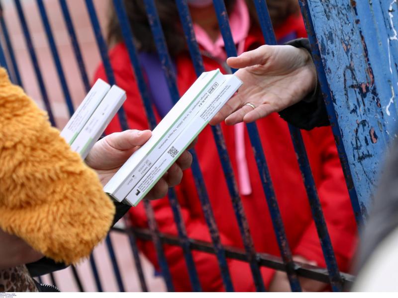 Ειδικότερα οι μαθητές όλων των βαθμίδων, εμβολιασμένοι και μη, καθώς και οι εμβολιασμένοι εκπαιδευτικοί, θα προμηθεύονται από την Τετάρτη 30 Μαρτίου έως και την Τρίτη 5 Απριλίου, τρία (3) δωρεάν αυτοδιαγνωστικά (self) τεστ από τα φαρμακεία, προκειμένου να καλύψουν τις ανάγκες ελέγχου των ημερών από 4 Απριλίου έως και 15 Απριλίου 2022 και για την επιστροφή από τις διακοπές του Πάσχα.