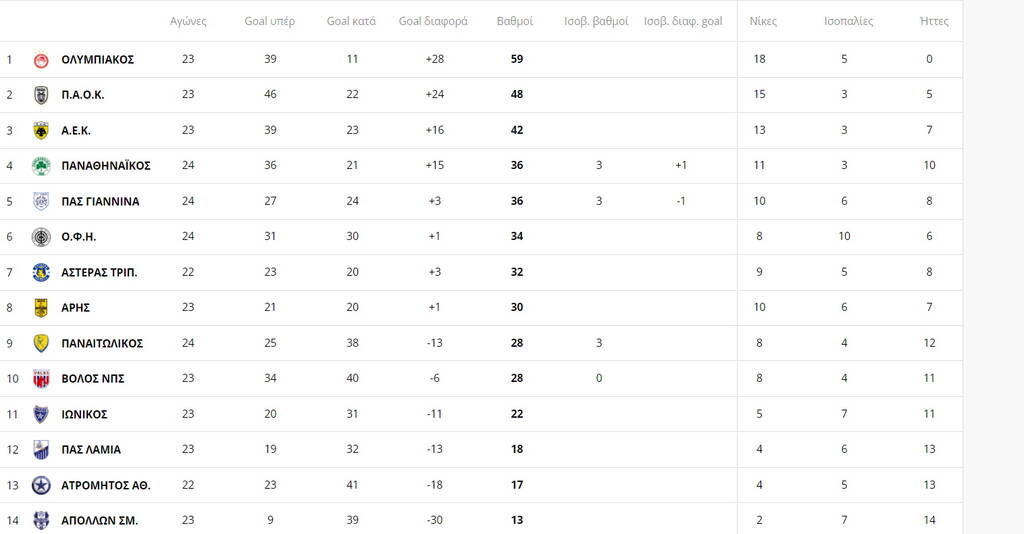 Τα αποτελέσματα της 24ης αγωνιστικής: