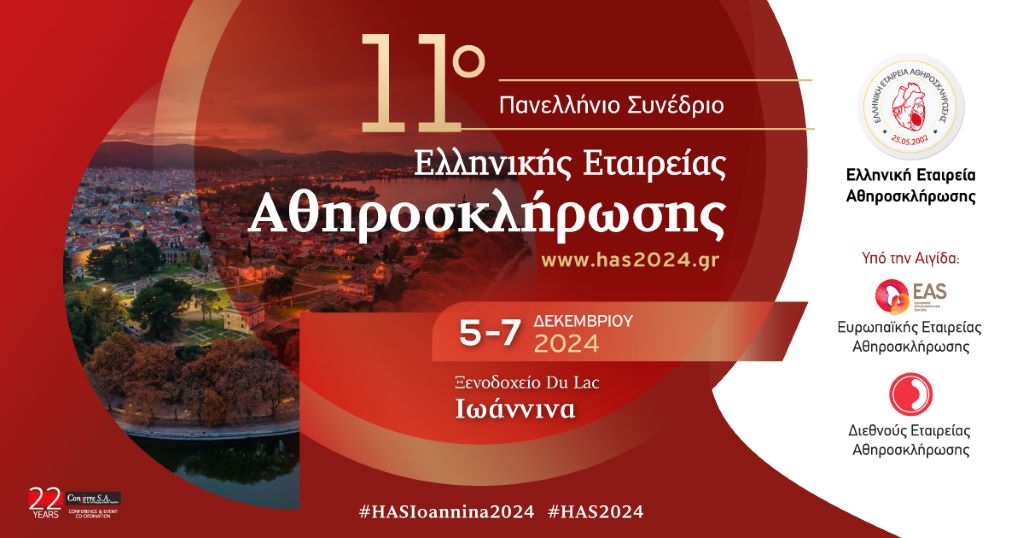Η Ελληνική Εταιρεία Αθηροσκλήρωσης (ΕΕΑ) ανακοινώνει με ιδιαίτερη χαρά τη διεξαγωγή του ετήσιου συνεδρίου της, το οποίο θα πραγματοποιηθεί στις 5-7 Δεκεμβρίου 2024, στην πανέμορφη πόλη των Ιωαννίνων και συγκεκριμένα στο ξενοδοχείο Du Lac.