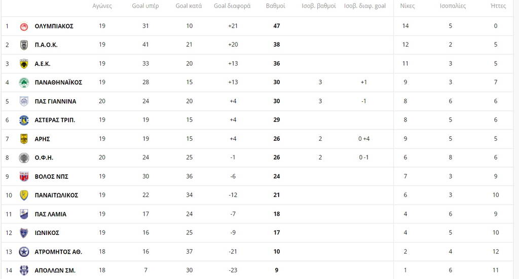 Η βαθμολογία, τα αποτελέσματα και η επόμενη (21η) αγωνιστική
