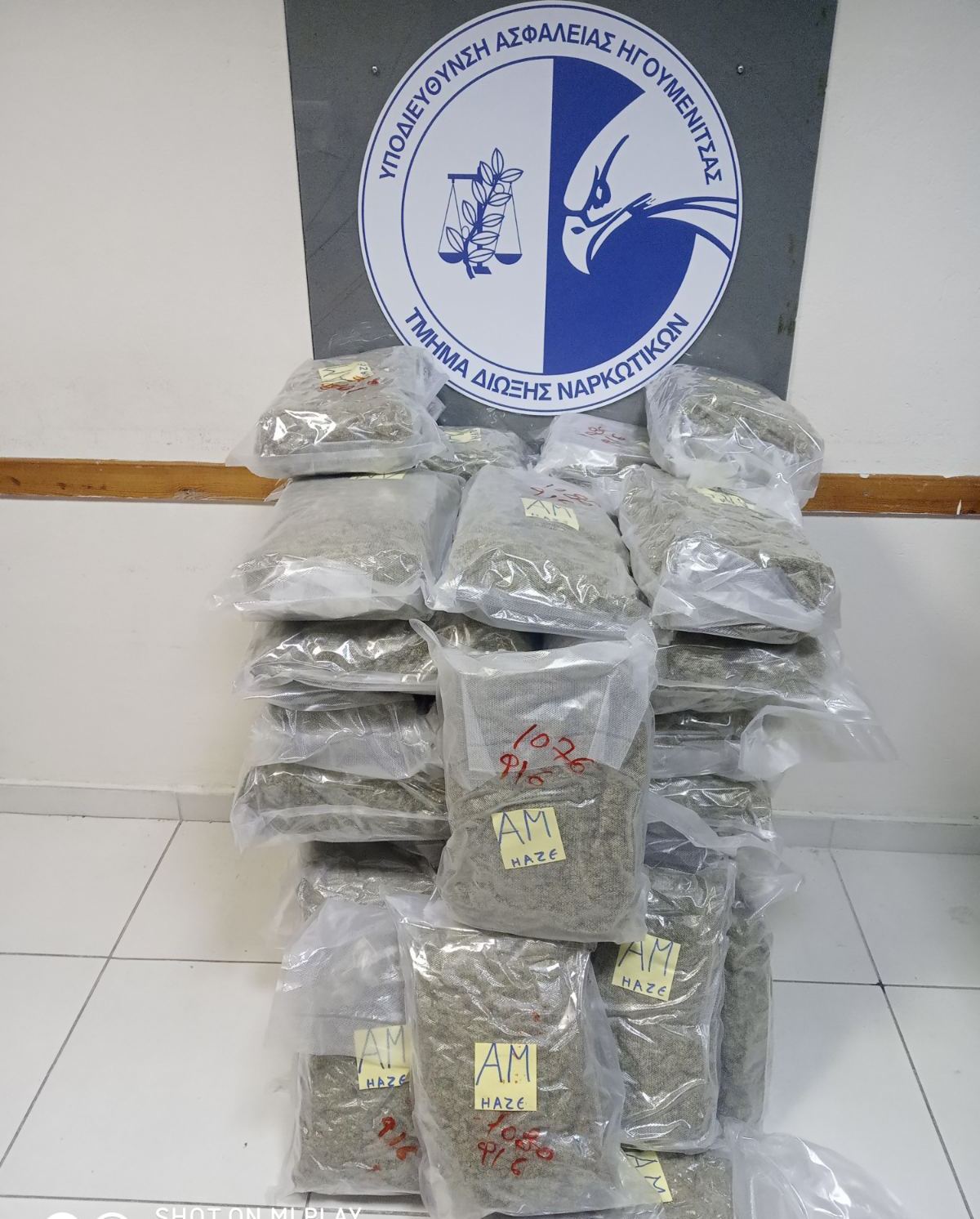 Κατά τον έλεγχο που ακολούθησε, βρέθηκαν και κατασχέθηκαν στο εσωτερικό του αυτοκινήτου -32- δέματα με ακατέργαστη κάνναβη, συνολικού βάρους -34- κιλών και -608- γραμμαρίων.