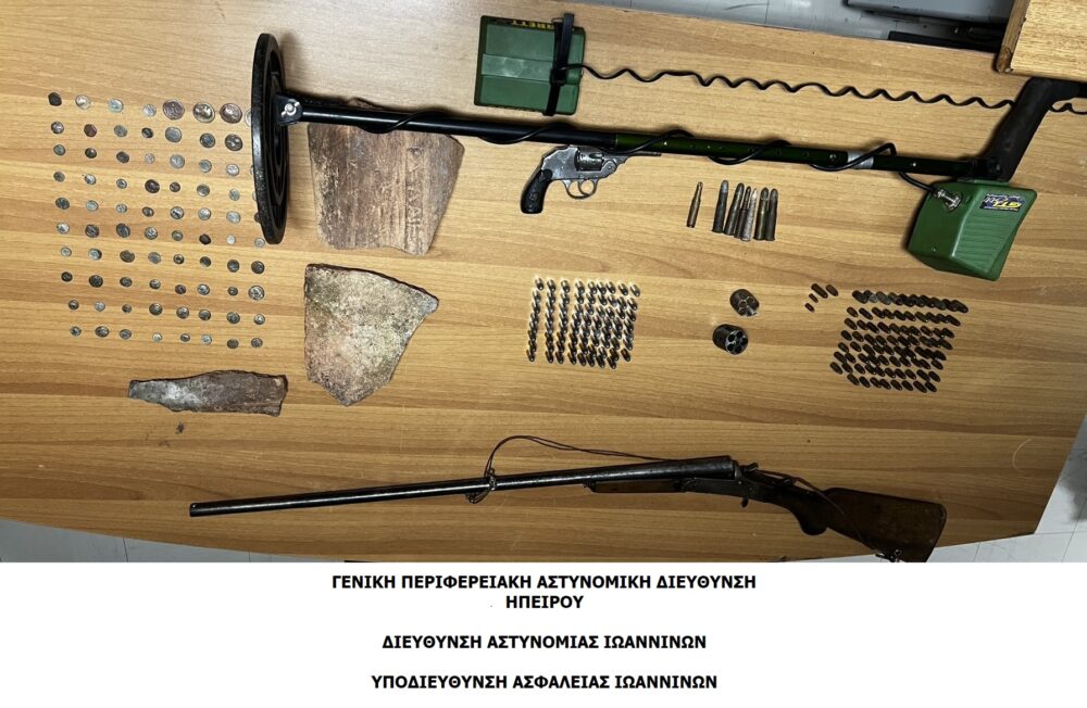 Συνελήφθησαν το μεσημέρι σε περιοχή της Φωκίδας από αστυνομικούς της Υποδιεύθυνσης Ασφάλειας Ιωαννίνων δύο ημεδαποί, κατηγορούμενοι για παραβάσεις της νομοθεσίας περί αρχαιοτήτων και όπλων.