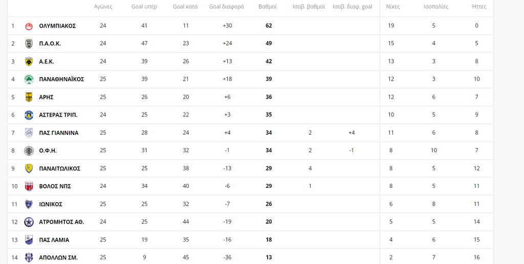 Σ’ αυτό το ενδεχόμενο περνούν στην εξάδα φυσικά οι Ηπειρώτες, αλλά και οι Θεσσαλονικείς, αφού έχουν μεν από 8 βαθμούς με τον Αστέρα, αλλά τον έχουν νικήσει δύο φορές.