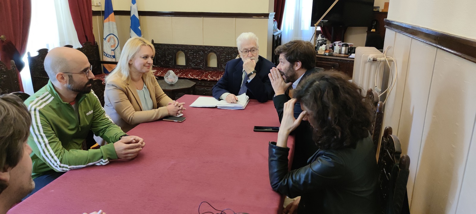 Στη συνάντηση συμμετείχαν συνεργάτες του Υφυπουργού, η Αντιδήμαρχος και Πρόεδρος του ΔΗΠΕΘΕ Χριστίνα Κωτσαντή, ο Καλλιτεχνικός Διευθυντής του ΔΗΠΕΘΕ Χάρης Πεχλιβανίδης και ο σύμβουλος του δημάρχου για θέματα πολιτισμού Χρήστος Παπαδόπουλος.