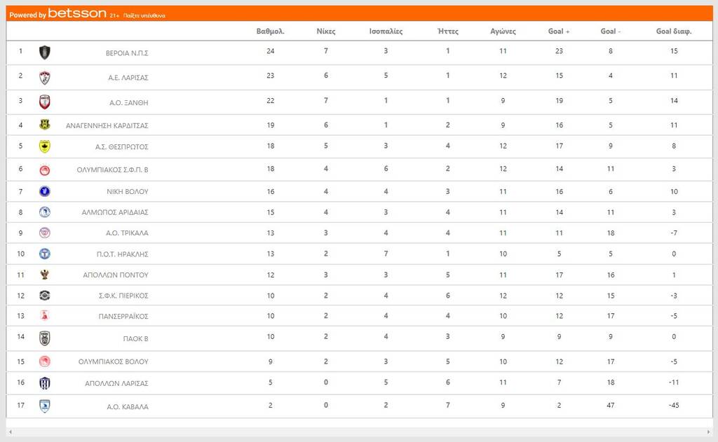 Πιερικός-Ολυμπιακός Β 1-2 (90′ Μπουόλι – 5′, 60′ Σαπουντζής) (11η αγων.)