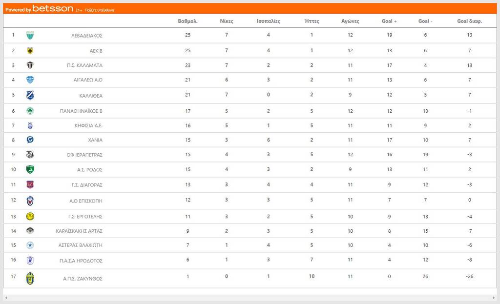 Παναθηναϊκός Β-ΟΦ Ιεράπετρας 3-1 (22, 33′ Αθανασακόπουλος, 69′ Τσιριγώτης – 72′ αυτ.) (11η αγων.)